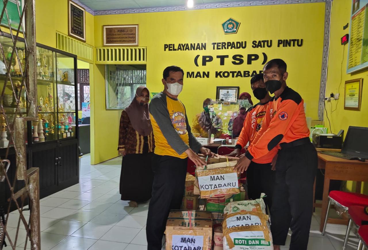 Warga MAN Kotabaru salurkan bantuan paket sembako untuk para korban longsor yang mengungsi ke Sebelimbingan Kabupaten Kotabaru. Bantuan tersebut dise...